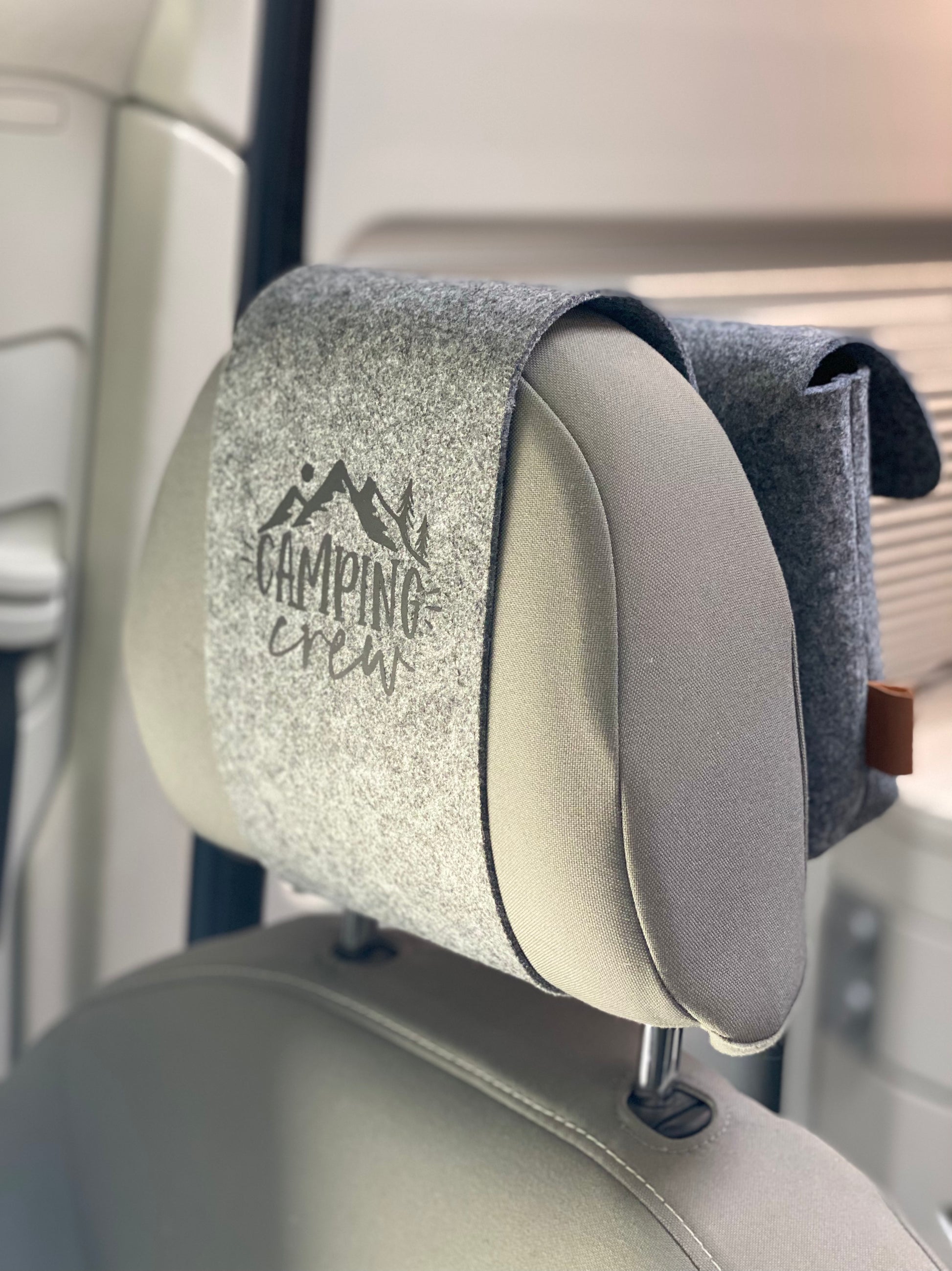 Wer kennt es nicht? Beim Campen müssen viele Kleinigkeiten mit und die brauchen natürlich ihren Platz im Bus. Diese Kopfstützen -Filztaschen nutzen wir bereits seit über einem Jahr in unserem Bus und wir wollen sie nicht mehr missen.