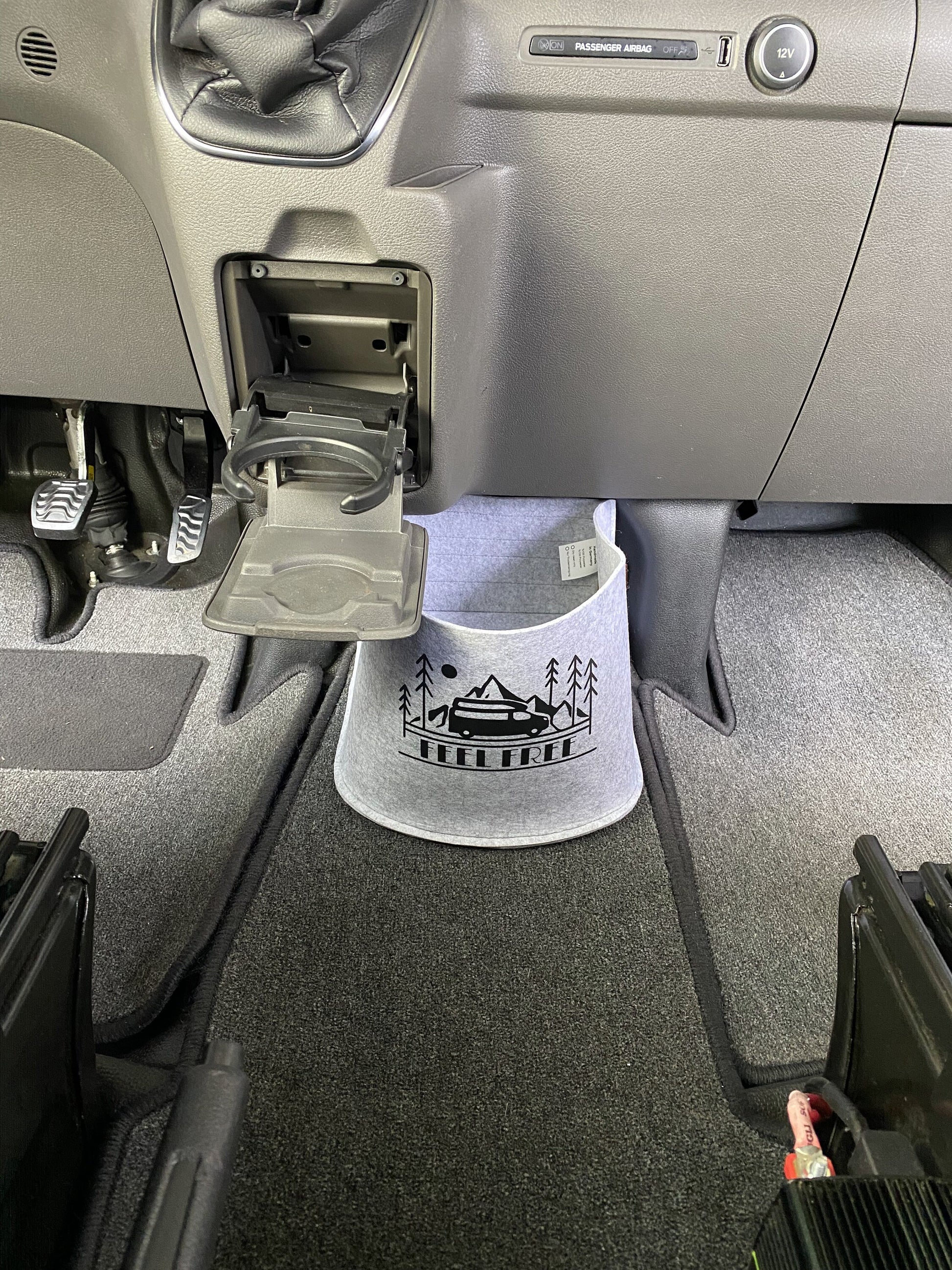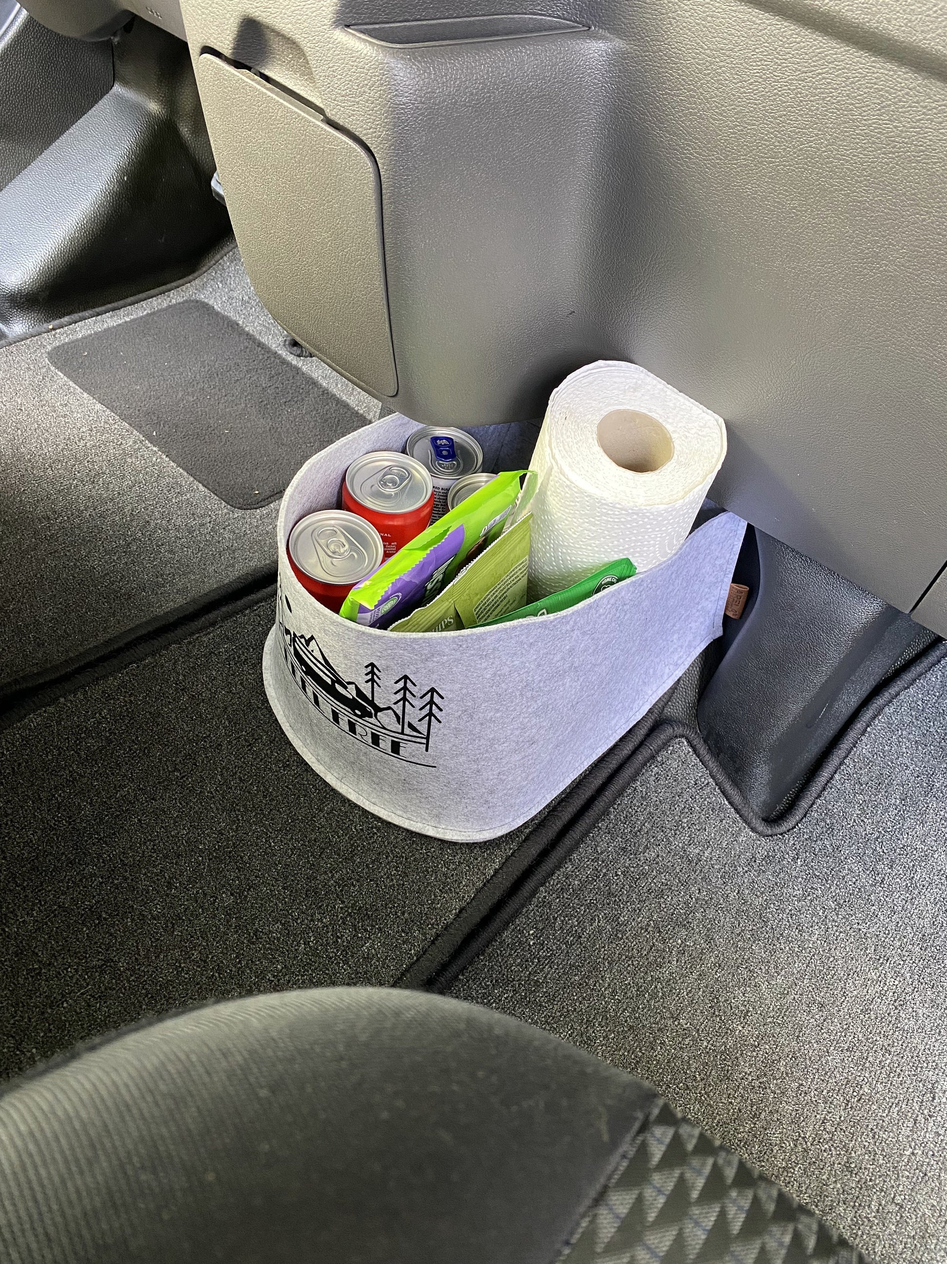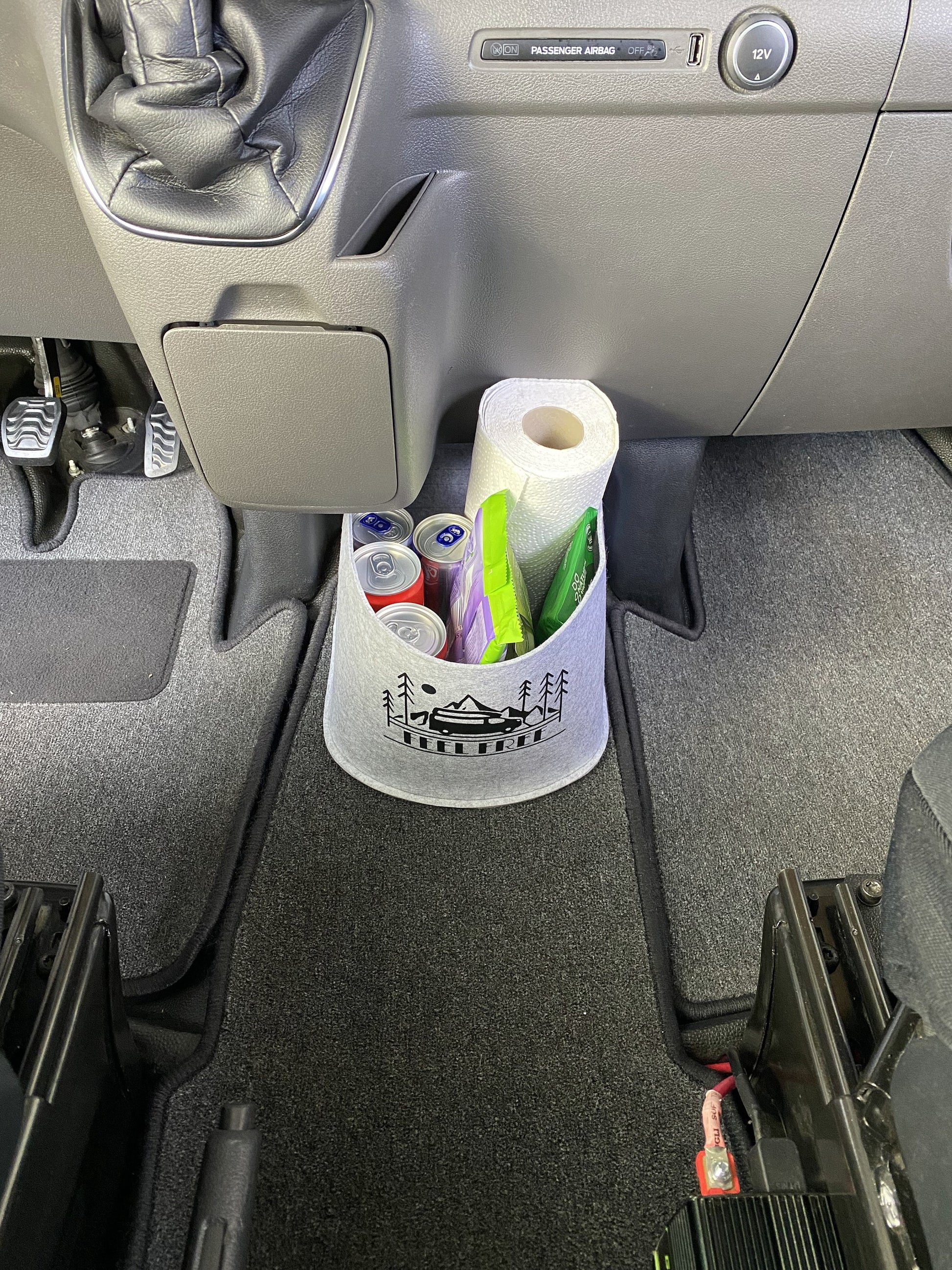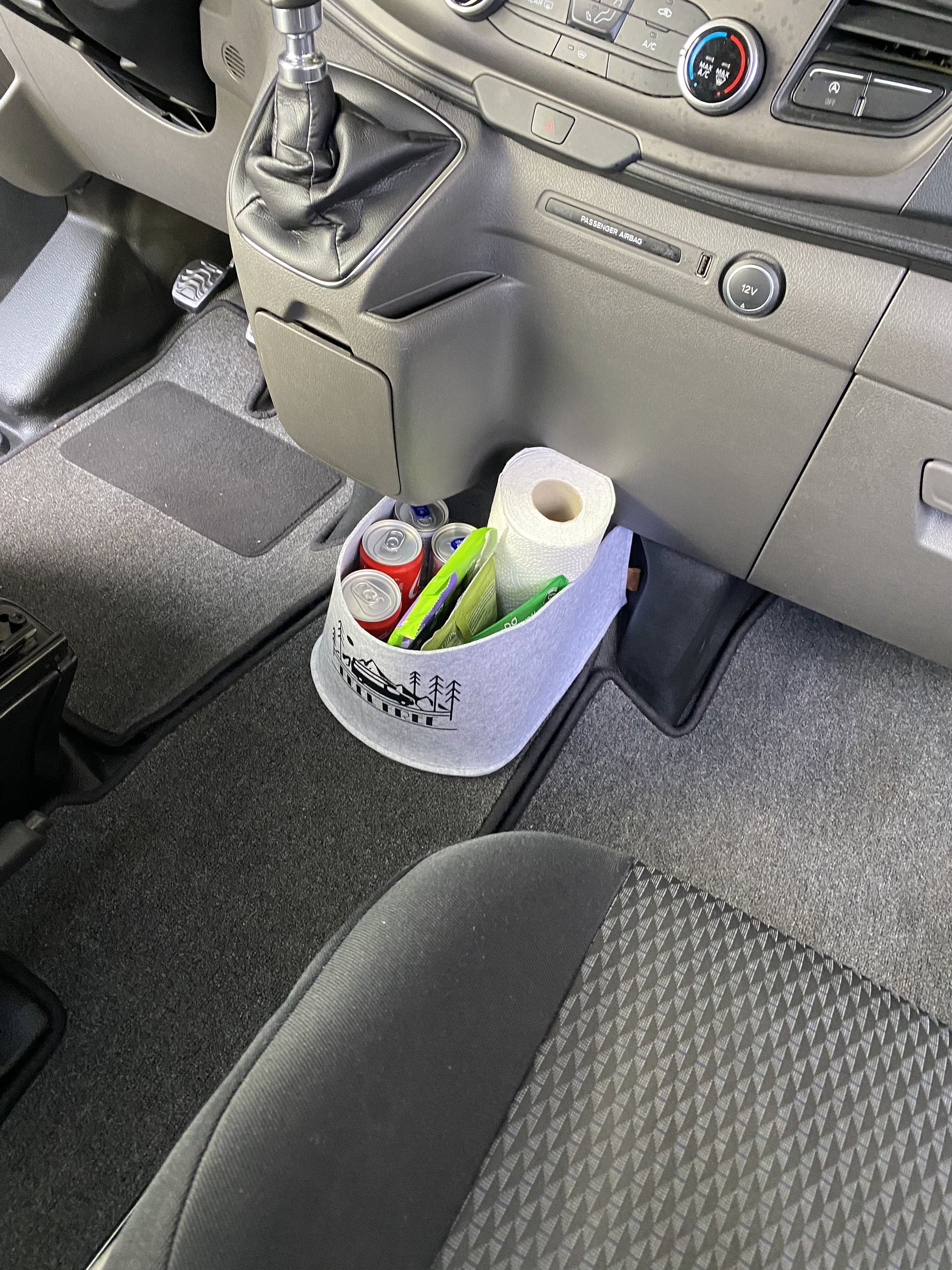 Die Arela Cockpitasche ist die Lösung! Diese handgefertigte Filztasche aus 3 mm dickem Filz mit einer Antirutschmatte ist speziell für verschiedene Campervans geeignet. Sie wird mit Klebeklettbändern befestigt und kann jederzeit problemlos entfernt werden.