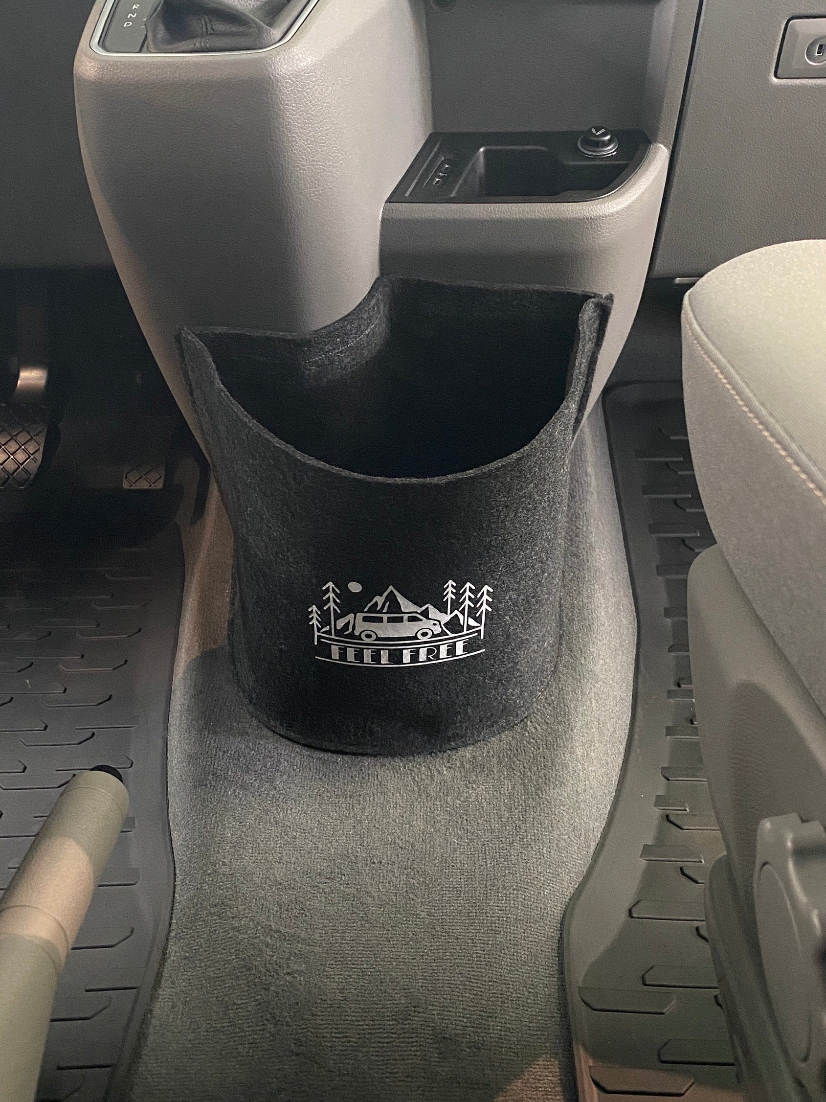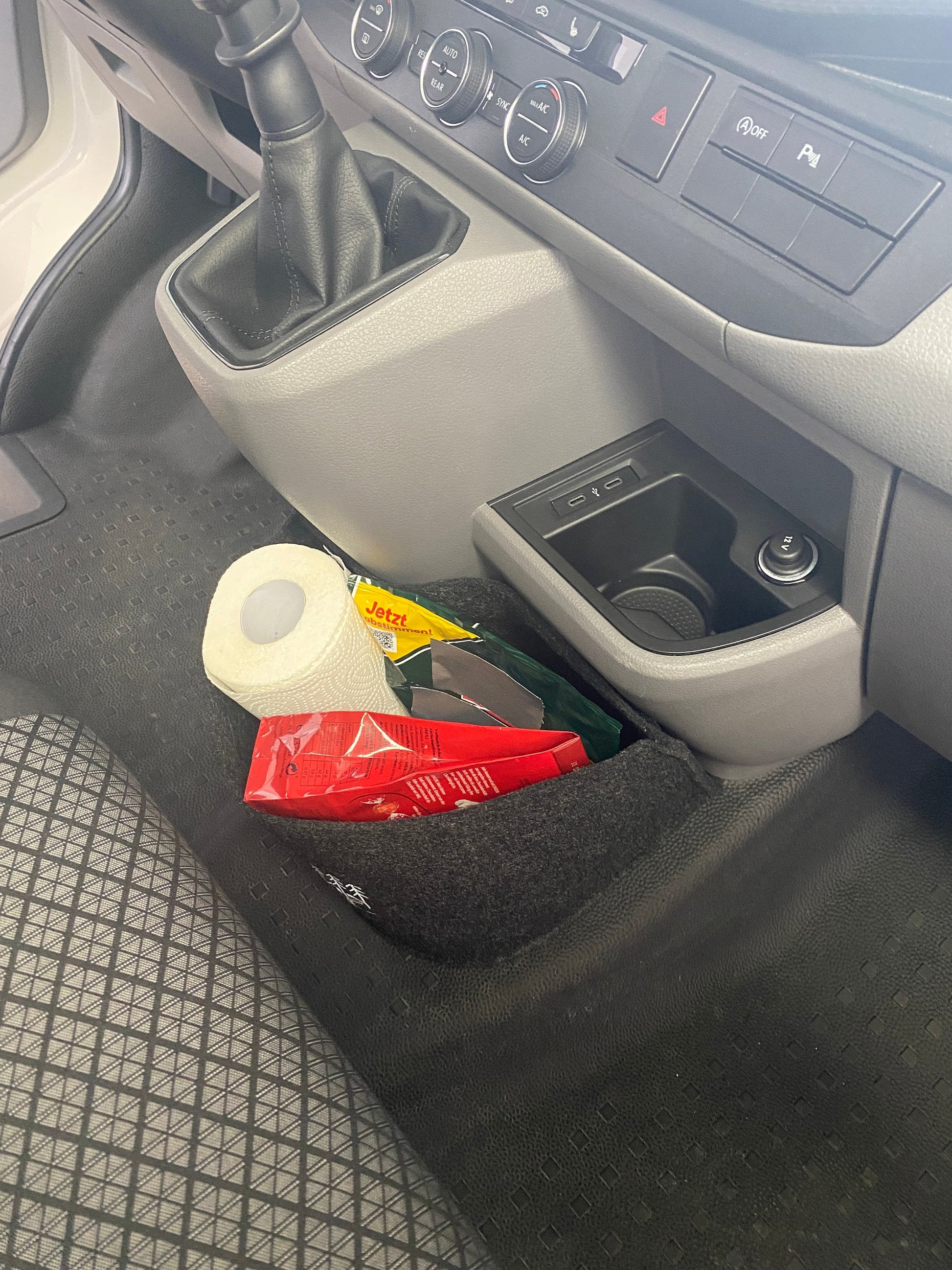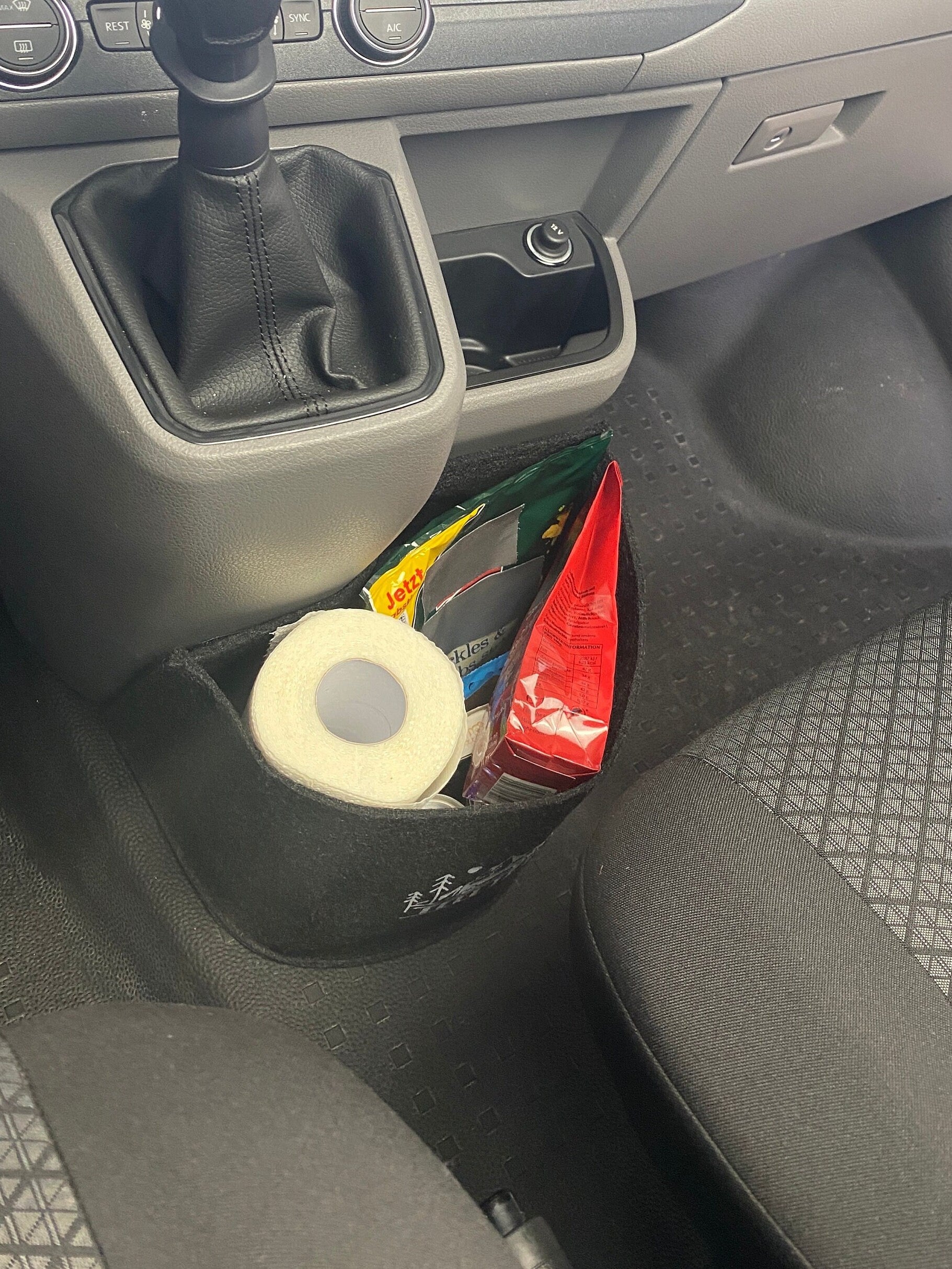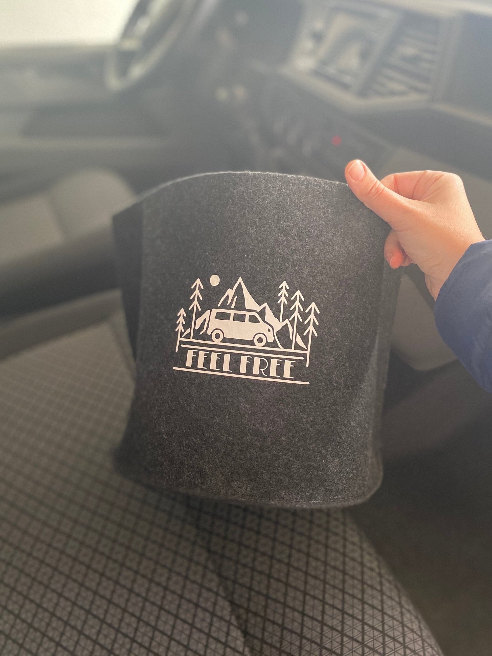 Die Arela Cockpitasche ist die Lösung! Diese handgefertigte Filztasche aus 3 mm dickem Filz und einer Antirutschmatte ist speziell für verschiedene Campervans geeignet. Sie wird mit Klebeklettbändern befestigt und kann jederzeit problemlos entfernt werden.