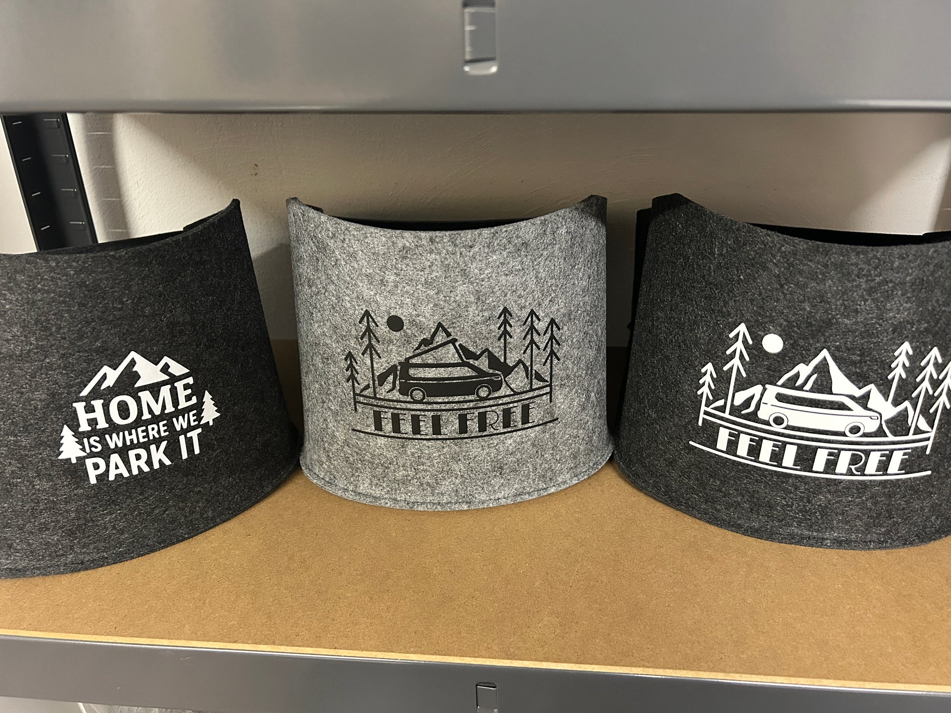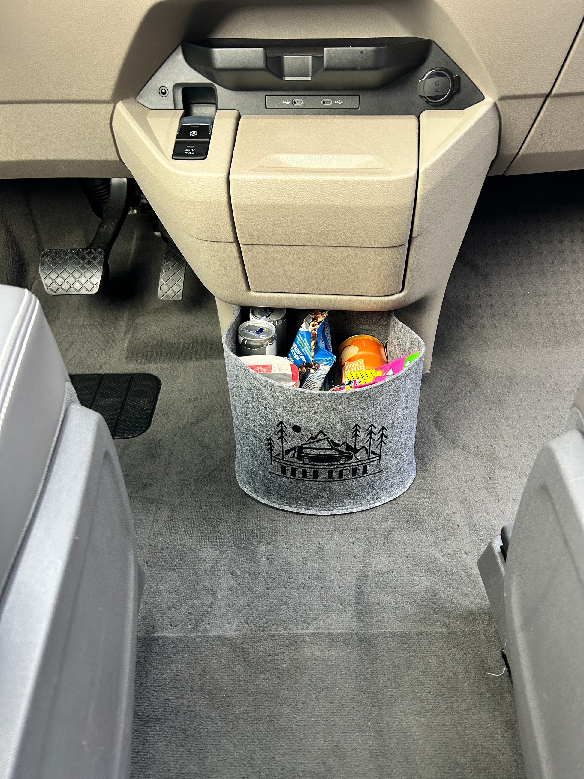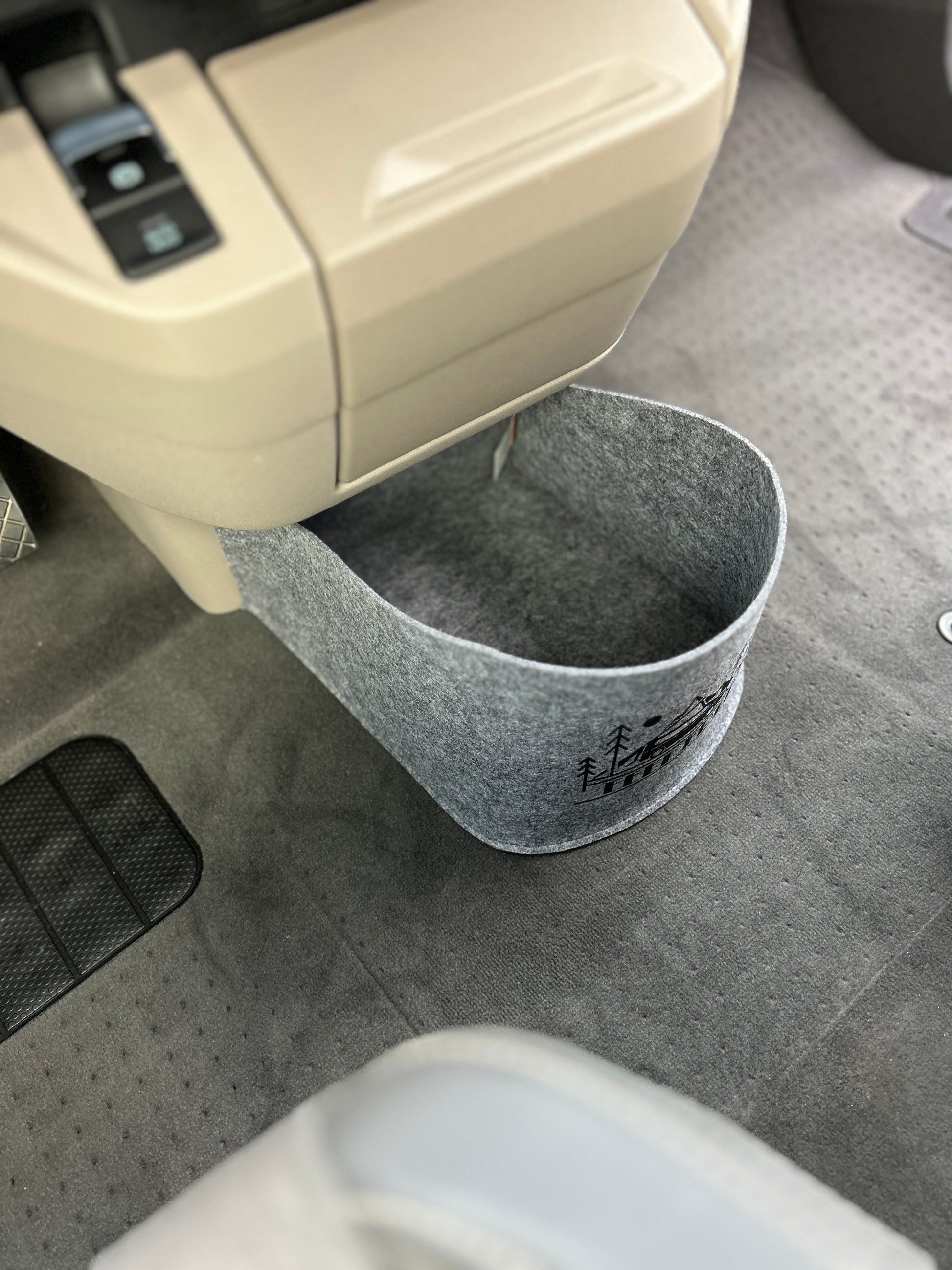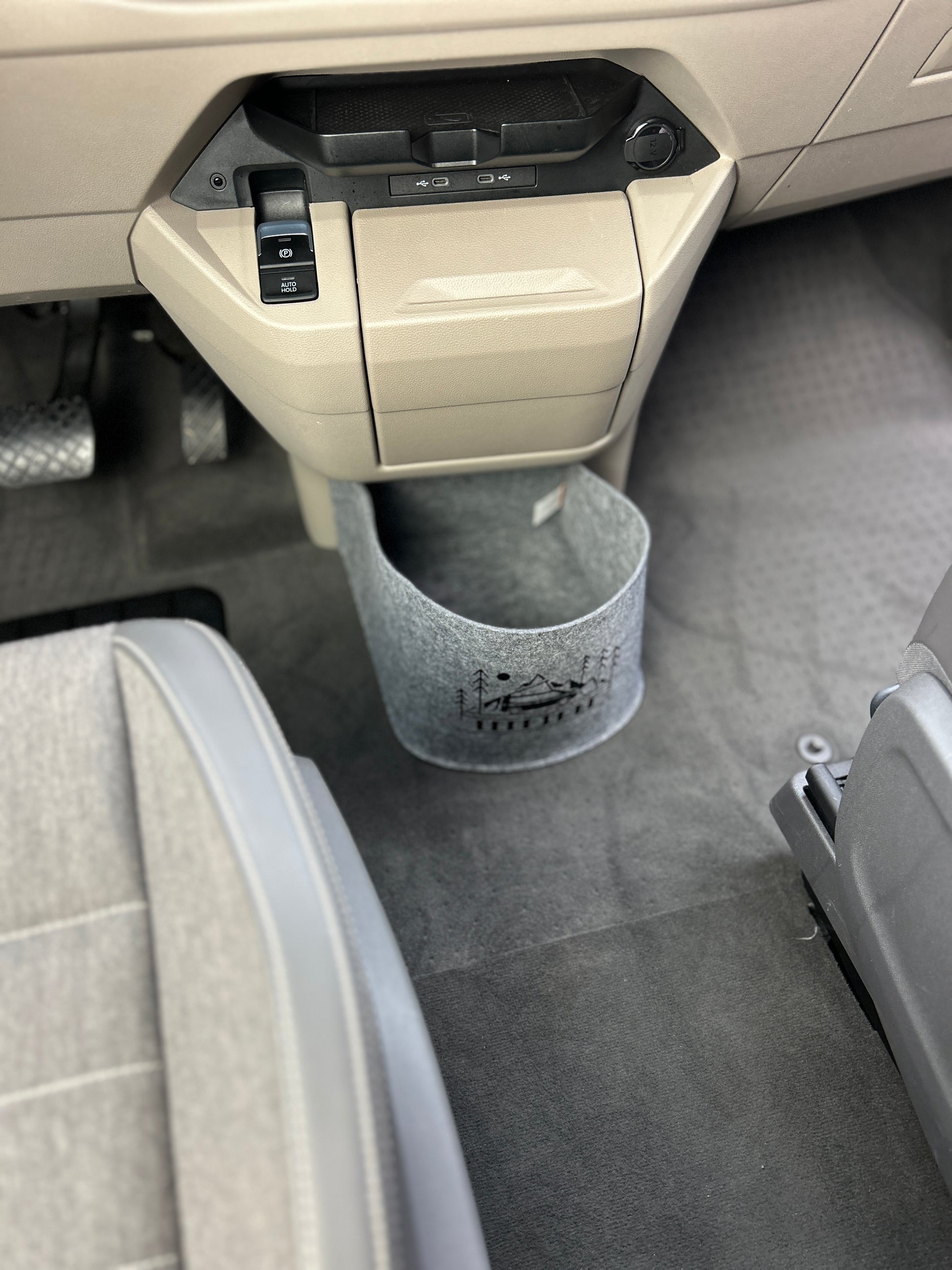 Die Arela Cockpitasche ist die Lösung! Diese handgefertigte Filztasche aus 3 mm dickem Filz und einer Antirutschmatte ist speziell für verschiedene Campervans geeignet. Sie wird mit Klebeklettbändern befestigt und kann jederzeit problemlos entfernt werden.